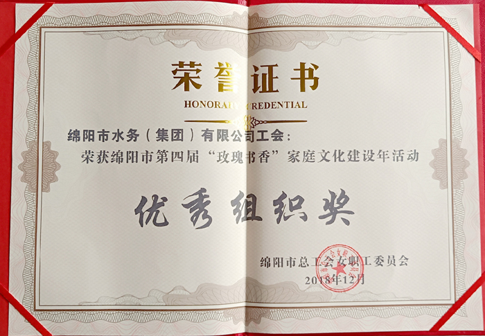 2018年12月綿陽市第四屆“玫瑰書香”家庭文化建設年活動游戲組織獎